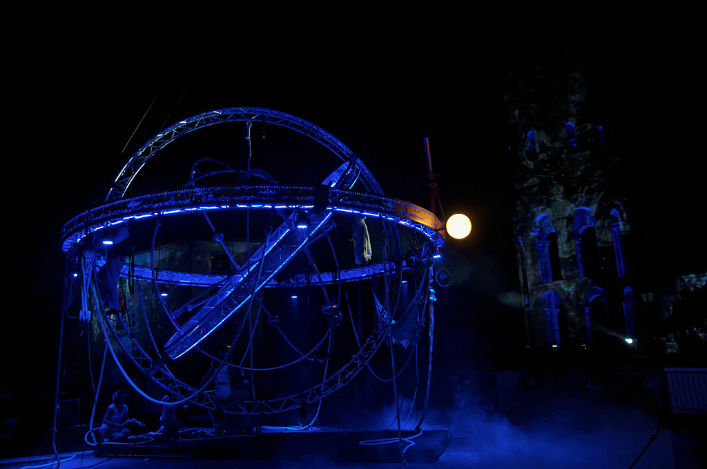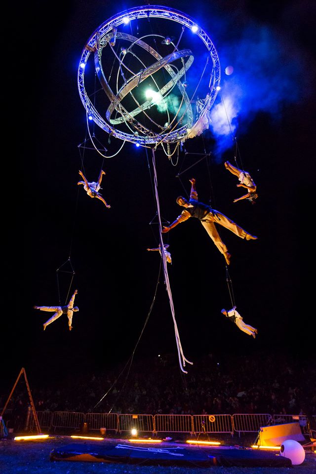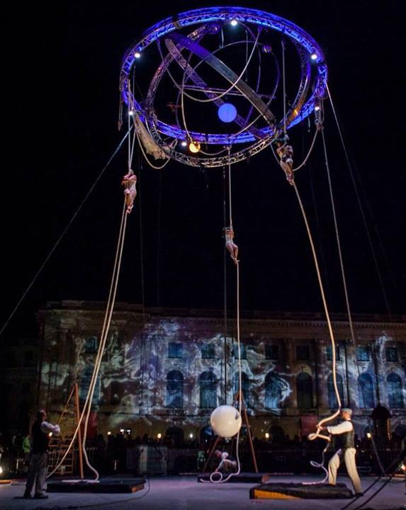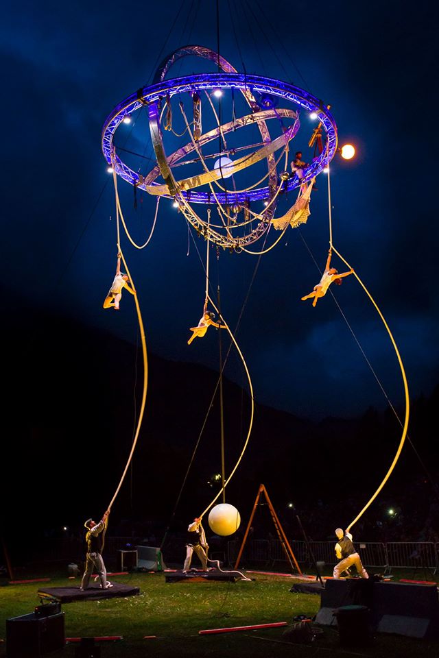 Ce spectacle est un grand rendez vous aérien pour tout public, il met en scène une structure articulée, perchée entre 15 et 30m du sol, le théâtre de plusieurs tableaux acrobatiques. C’est une histoire humaniste dont l’inspiration majeure est la prise de conscience de la position de la terre, planète gravitant autour du soleil et non l’inverse a l’image de cette réalité scientifique du 17ème siècle pourtant condamnée.