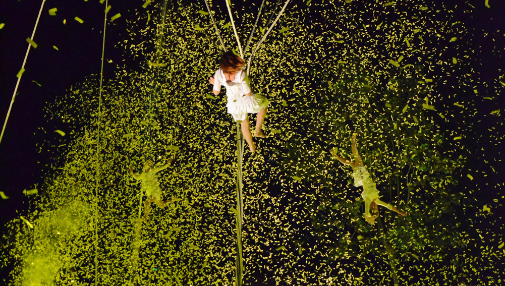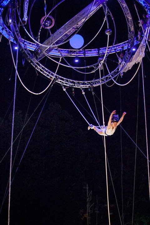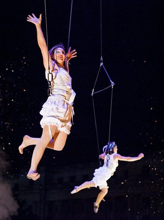 - Théatre et Cirque aérien, corde lisse, sangle, mat chinois ballant, trapeze en grand ballant, Duo de sangles, danse aérienne.